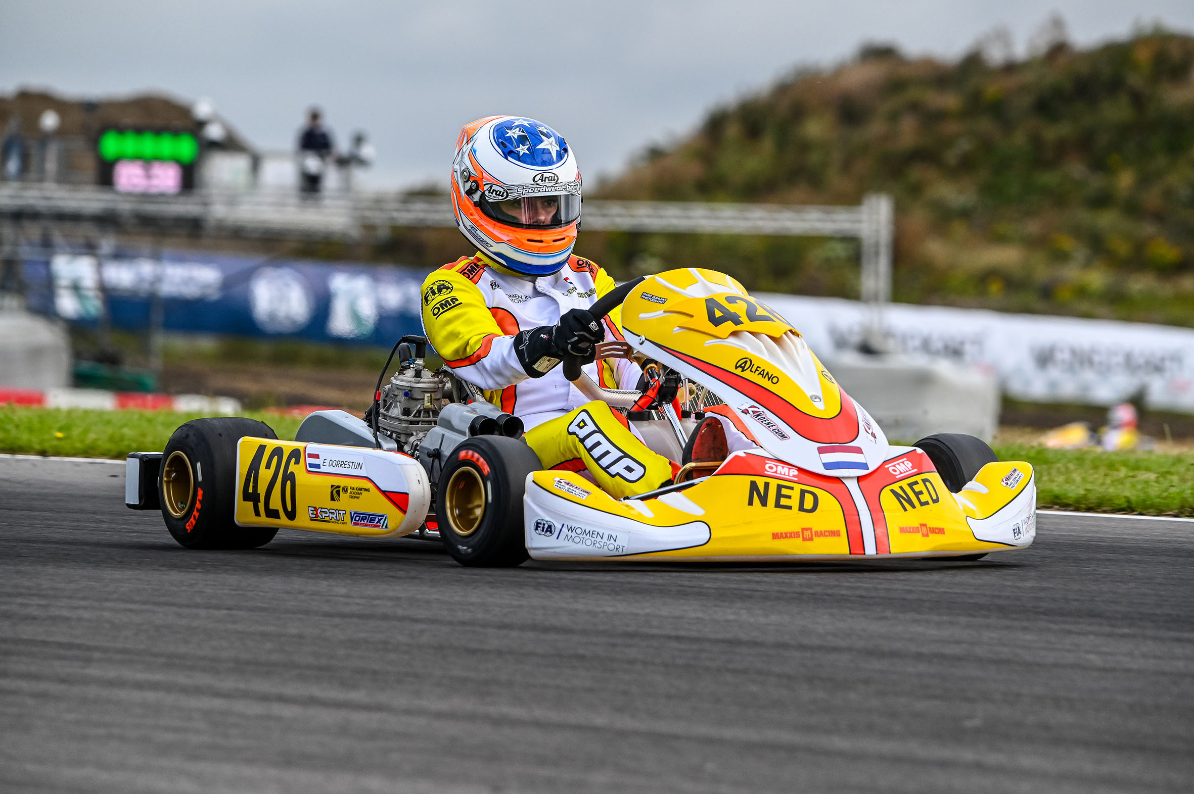 Dorrestijn, lid van de KNAF Talent First Academy, scoorde bij de tweede wedstrijd van de FIA Karting Academy Trophy in het Italiaanse Viterbo met een achtste plaats meer dan uitstekend, maar omdat ze bij race één van de baan was gereden, maakte het Nederlandse karttalent geen kans meer op de titel. Een dagsucces als afsluiting van de titelstrijd telt echter ook en om goed voorbereid te zijn, had Dorrestijn een paar weken voor de race ingeschreven voor een wedstrijd op de Deense baan en daar een tweede positie gescoord. Omdat de baan haar direct goed lag, ging Dorrestijn dan ook vol vertrouwen richting de afsluitende ronde van de FIA Karting Academy Trophy.