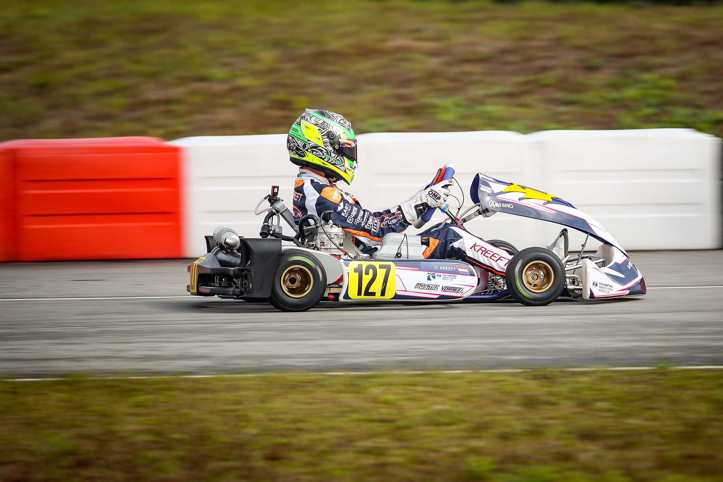 In de uit 53 deelnemers bestaande Junior-categorie kende Kreeft een wat stroever begin op de ook voor hem nieuwe baan. In de kwalificatie bleef Kreeft in zijn groep van 26 rijders steken op plek tien, was daarmee 19de algemeen en dat betekende startpositie negen in de drie kwalificatieheats. In de eerste heat moest Kreeft zelfs een paar plaatsen prijsgeven en werd daarmee als dertiende geklasseerd. Heat twee leverde een negende positie op terwijl het jonge Nederlandse karttalent in een goede derde heat op een natte baan wist op te rukken naar plek vijf. Helaas wierp een tijdstraf Kreeft terug naar plek tien. “Het was een lastige dag”, aldus Koen de Meester, die Kreeft ook in Maleisië begeleidde. “In de kwalificatie zat hij op een ongelukkig moment in verkeer, maar miste ook tempo. Na heat één kregen we een andere motor en dat ging beter, al had er in heat twee iets meer ingezeten. De derde heat was netjes, maar helaas kwam die tijdstraf erbij.”