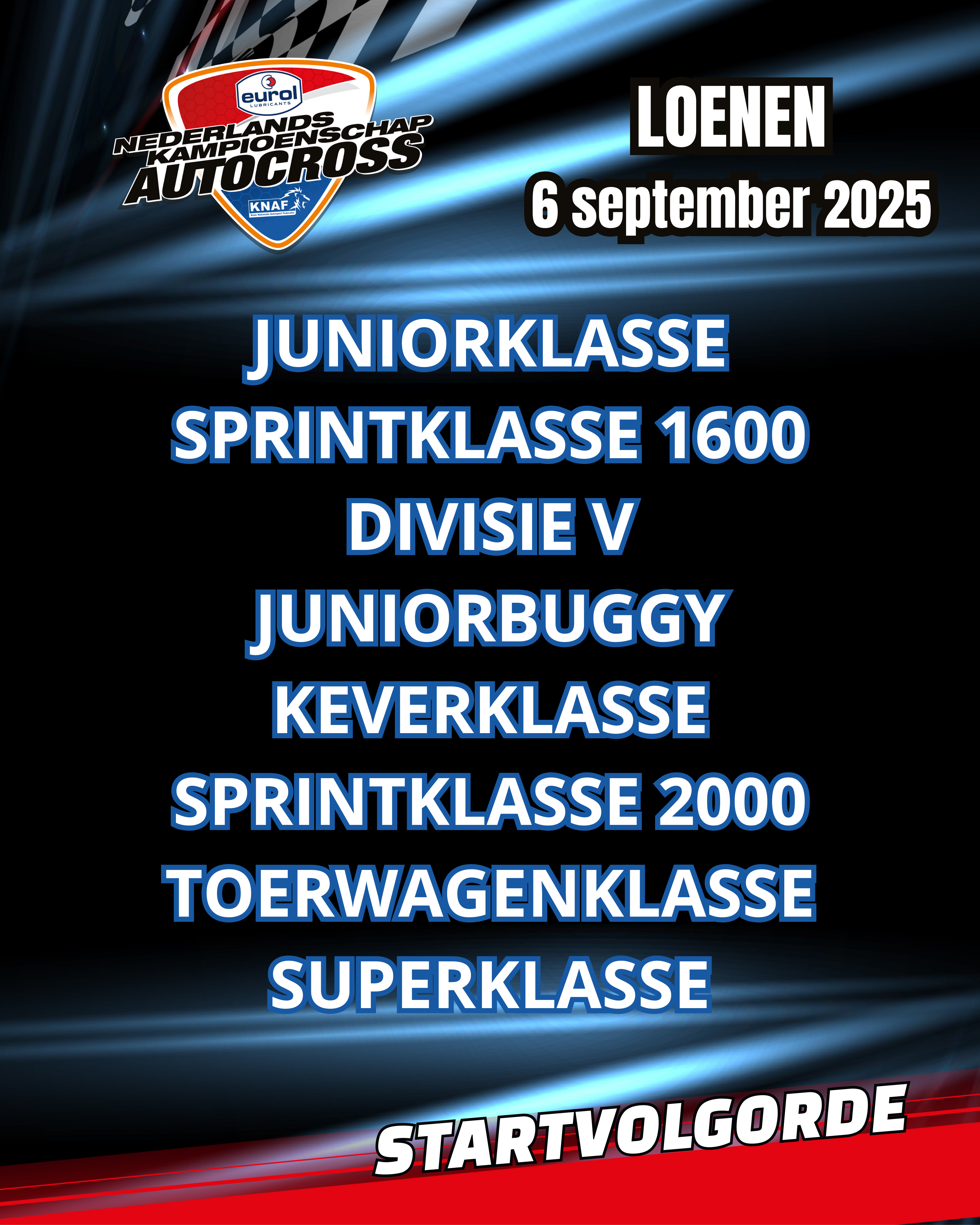 Zaterdag 6 september is het zover: de ontknoping van het Eurol NK Autocross 2025. In Loenen wordt het seizoen afgesloten met de zesde en laatste wedstrijd – en wat voor één. Op de zandbaan van LAT'77 gaan we zien wie zich Nederlands kampioen mag noemen.